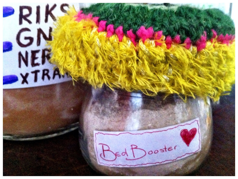 Sedan gjorde vi en blandning till mig som vi kallade Bed Booster. Ja, efter så många års amning och den nära frigiditet som tagit min kropp gisslan är det dags att släppa hämningarna nu...